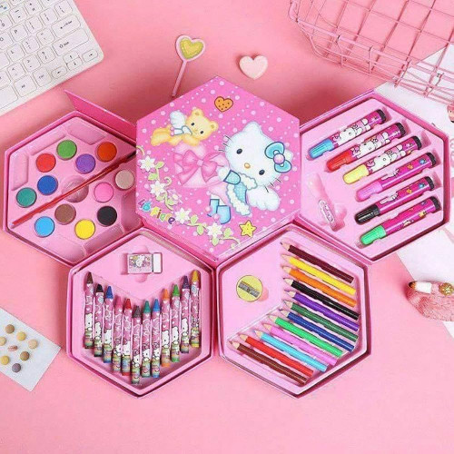 – Complete art set with pencils, crayons, water colours & sketch pens