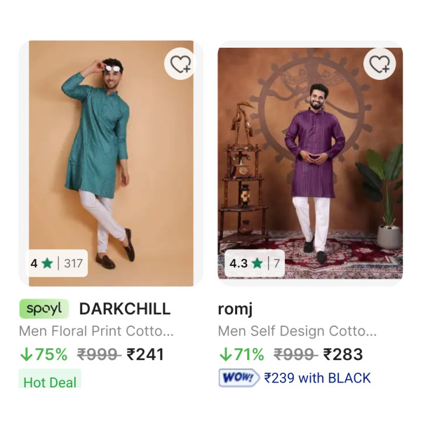 • Wide variety of stylish men's kurtas