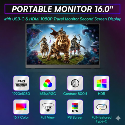 Millennium Technology 16″ FHD Portable Monitor with IPS Display & Foldable Design