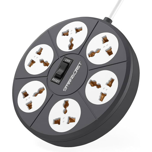 STANDLAST 6-Socket Extension Board | 1.8 Meter Surge Protector & 10A Spike Guard | 240V Heavy Duty Extension Cord | Universal Socket Power Strip for Home, Office, TV, PC & Appliances - Grey