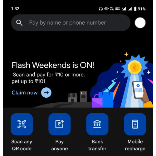 Gpay Flash Weekends is ON! Scan and pay for ₹10 or more, get up to ₹101