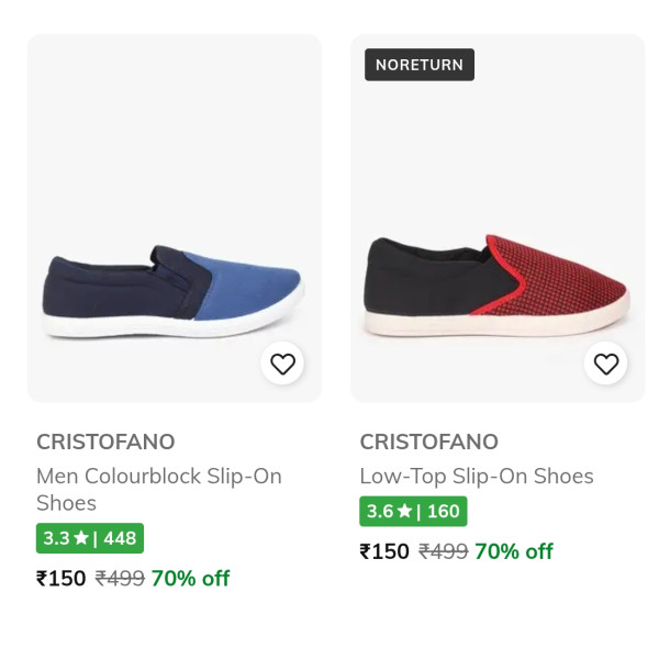 - Wide variety of budget-friendly men’s footwear with prices beginning at just ₹150—great for trending, everyday wear