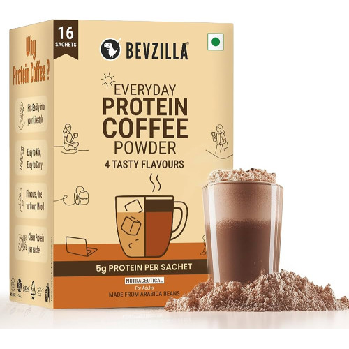 Bevzilla Everyday Protein Instant Coffee Powder Sachets – 160g (16×10g) with 5g Protein Each