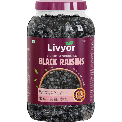 LIVYOR Afghani Black Raisins Seedless 1kg Premium Dry Fruits