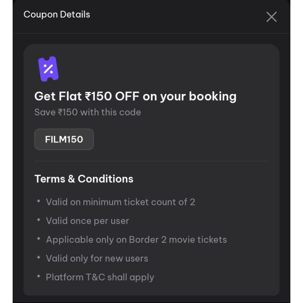 – Book minimum 2 tickets & get flat ₹150 off