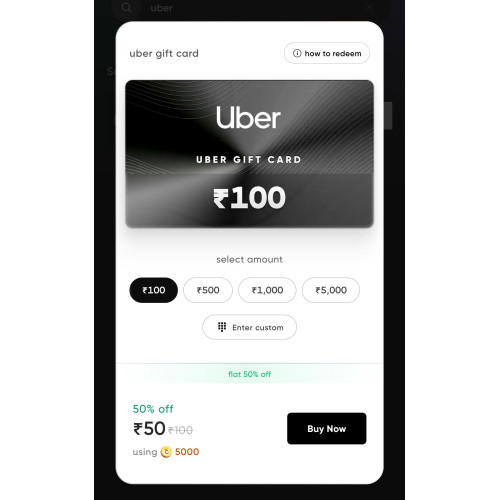Uber ₹100 Gift Card at ₹50