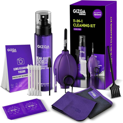Gizga essentials 11 in 1 Screen Cleaning Kit with 150ml Spray, Air Blower, Lens Tissues, Swabs & Wipes, Brushes, Key Puller, Microfiber Cloths for Laptop PC Keyboard Camera Smartphone Tablet Gadgets