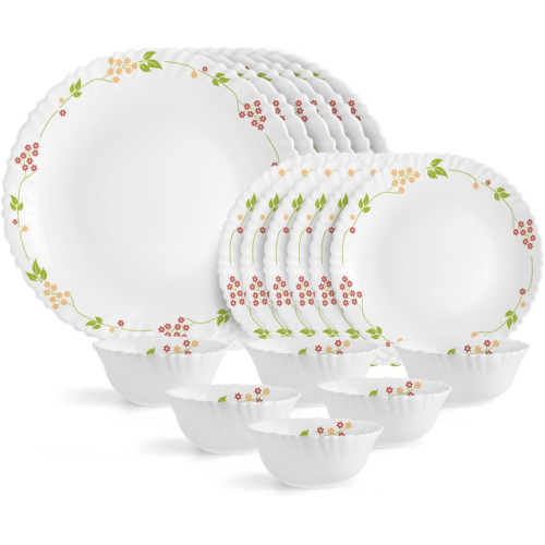 Cello Dazzle Series White Floral Opalware Dishwasher and Microwave Safe 22 Piece Dinner Set