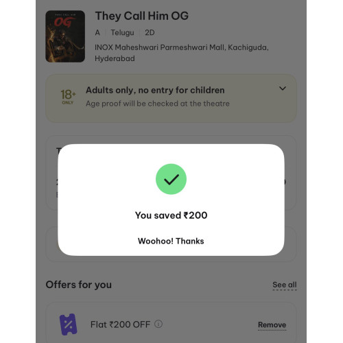 Buy 1 get 1 movie ticket with max discount of ₹200