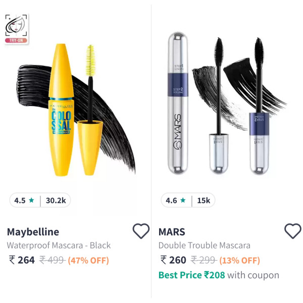 Wide range of mascara, eyeliner, kajal, and more for eye makeup