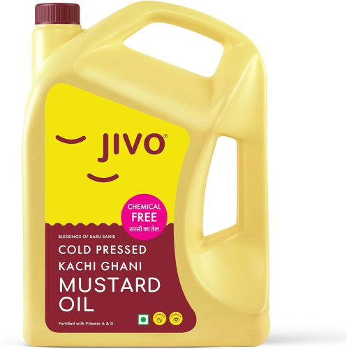 Jivo Premium Cold Pressed Kachi Ghani Mustard Oil 5 L – Omega-3 & Vitamin E for Cooking