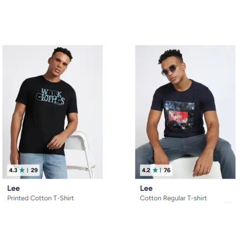 Lee Brand Men T Shirts starting from ₹307 with minimum 70% discount. Stylish printed, oversized, slim fit, and cotton t-shirts available. Great quality and value from a trusted brand.