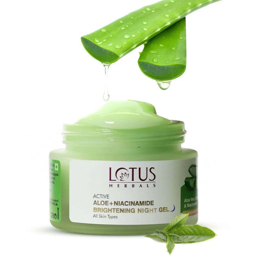 LOTUS HERBALS ACTIVE ALOE+NIACINAMIDE CALM NIGHT GEL, 50g. Soothing night gel with aloe vera and niacinamide to calm and rejuvenate skin while you sleep.