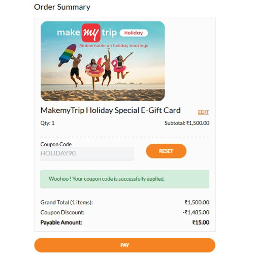 MakeMyTrip Holiday Special E-Gift Card Loot – ₹1500 at Just ₹15