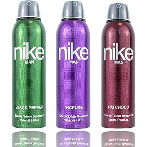 Nike Men's Deodorant Spray, Pack of 3 – Bold scents of Black Pepper, Incense & Patchouli, 200ml each for long-lasting freshness! Link: