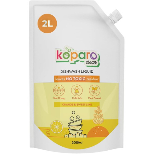 Koparo Organic Dishwash Liquid | 2 Litres | Orange and Sweet Lime Fragrance | Natural & Plant Based With Tea Tree Oil Germ Protection | Baby & Pet Safe