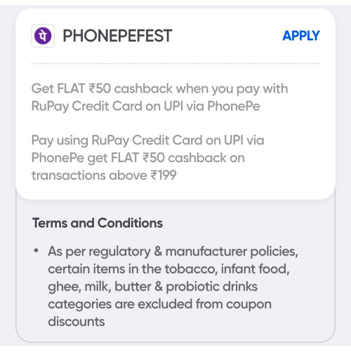 Go to Swiggy Instamart and Buy Above ₹199 and Apply Phonepe Offers / Use Code