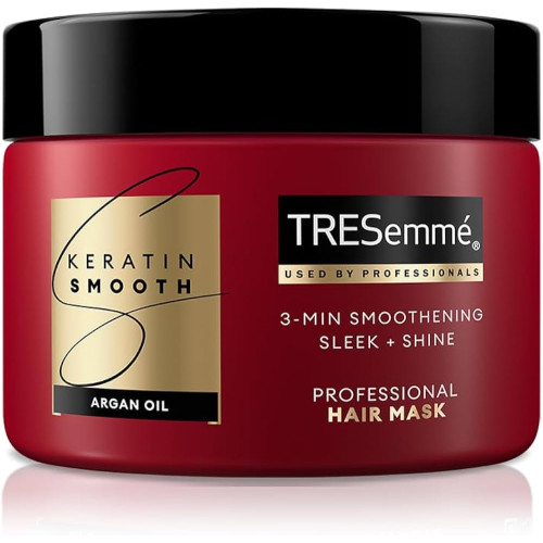 TRESemme Keratin Smooth Hair Mask 300ml with Keratin Protein and Argan Oil. Provides salon-like smooth hair with a 3-minute salon treatment. Deeply conditions and tames frizz for silky, manageable hair.