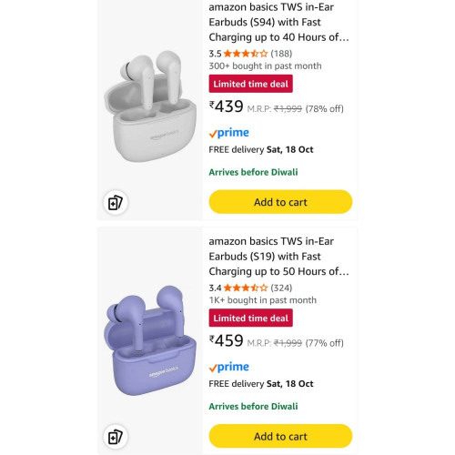 Amazon Basics TWS Earbuds Starting at ₹439