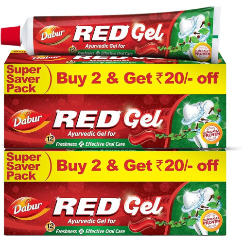 Dabur Red Gel Ayurvedic Toothpaste - 600g Pack (150g x 4) | Gum Care & Freshness