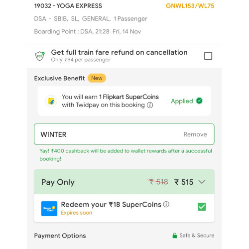 – Apply promo code "WINTER" to receive ₹400 cashback in ConfirmTkt wallet