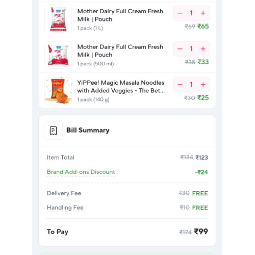 Zepto Yippee Noodles 70g x2 Free on ₹99 Cart