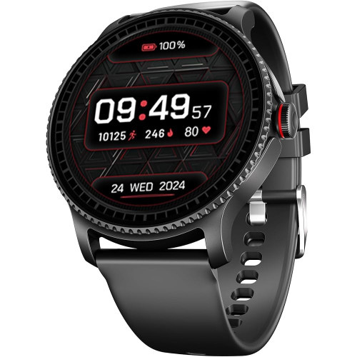 - Features 1.39″ (3.5 cm) HD display, Bluetooth calling, QR Tray, and Emergency SOS